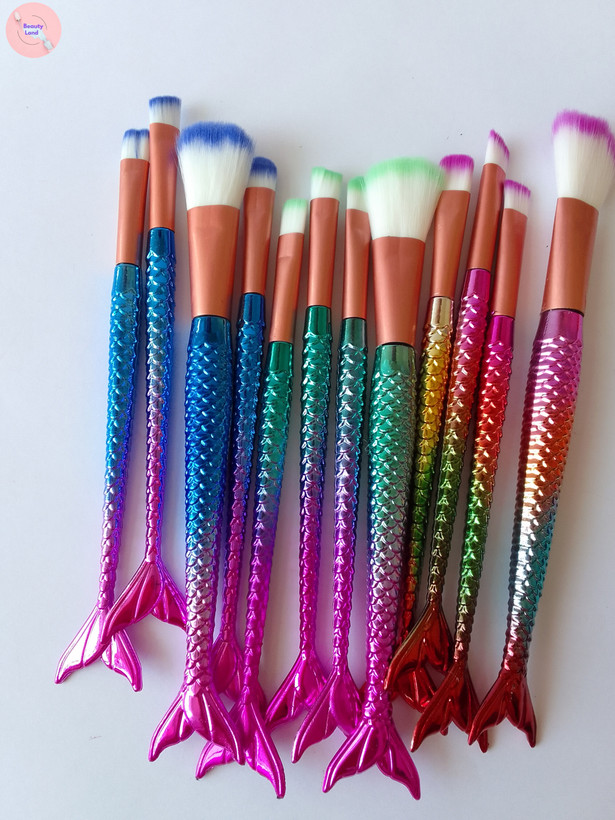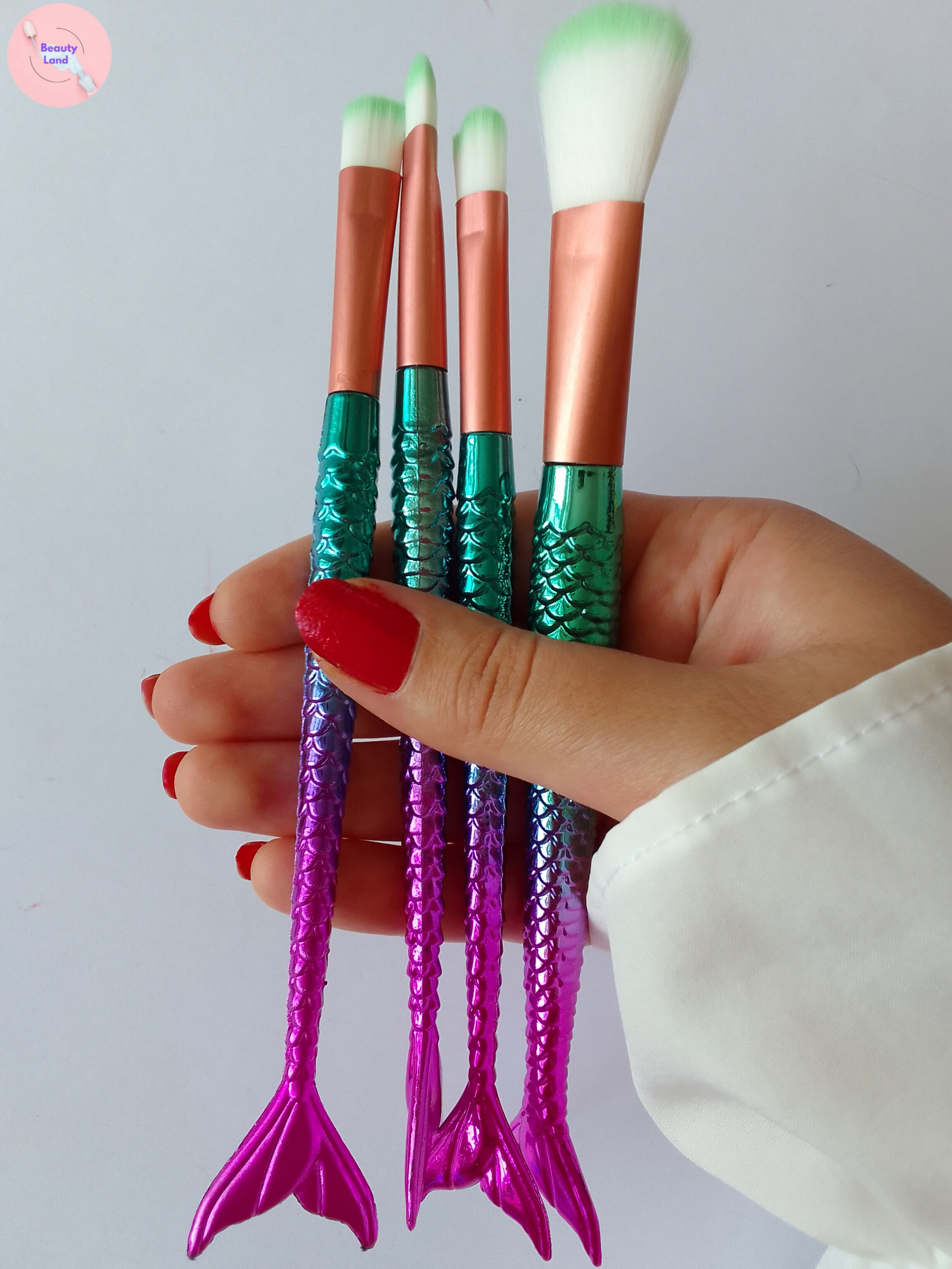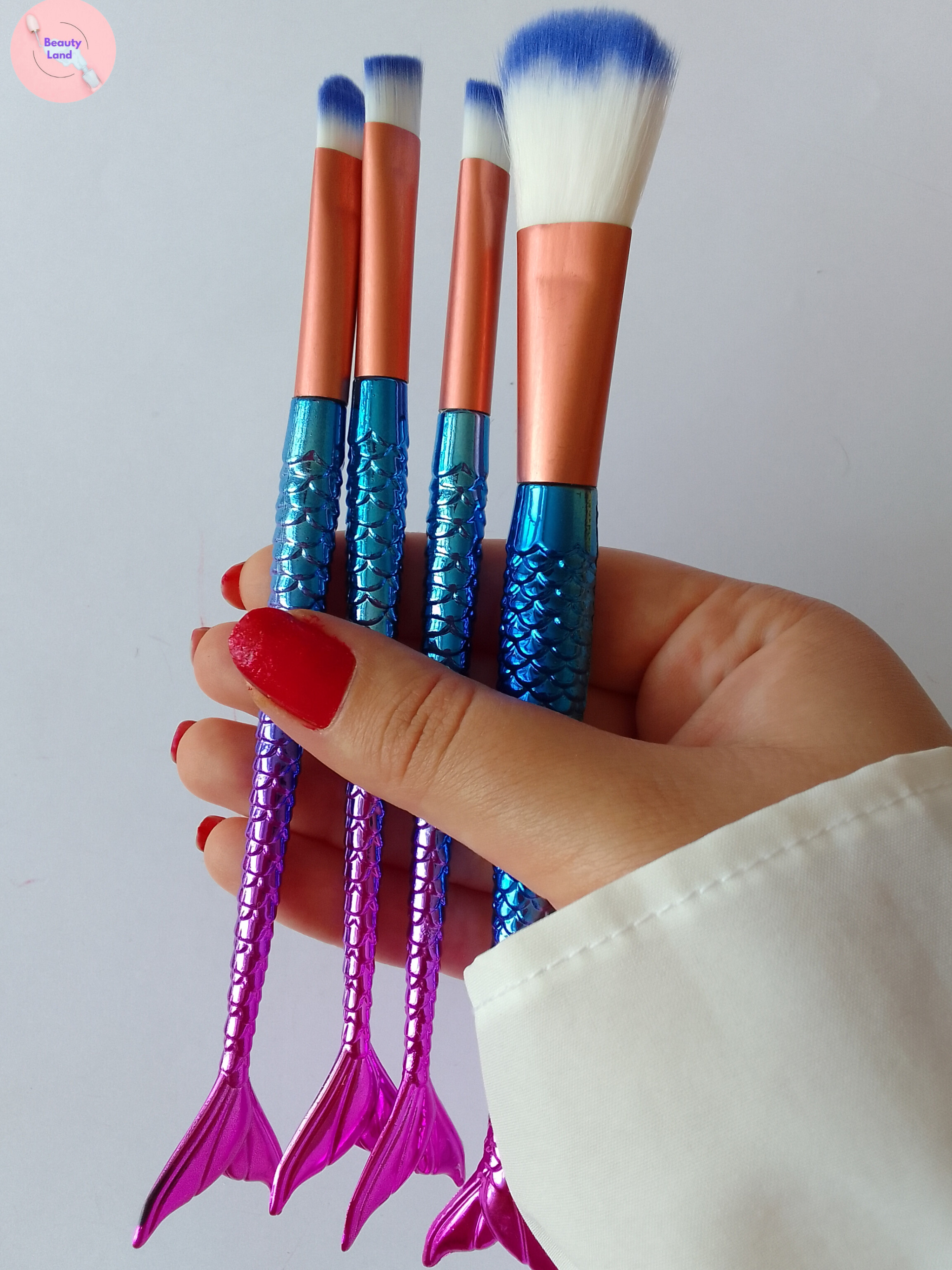ست براش آرایشی دمماهی ۴ عددی – طراحی فانتزی و رنگینکمانی