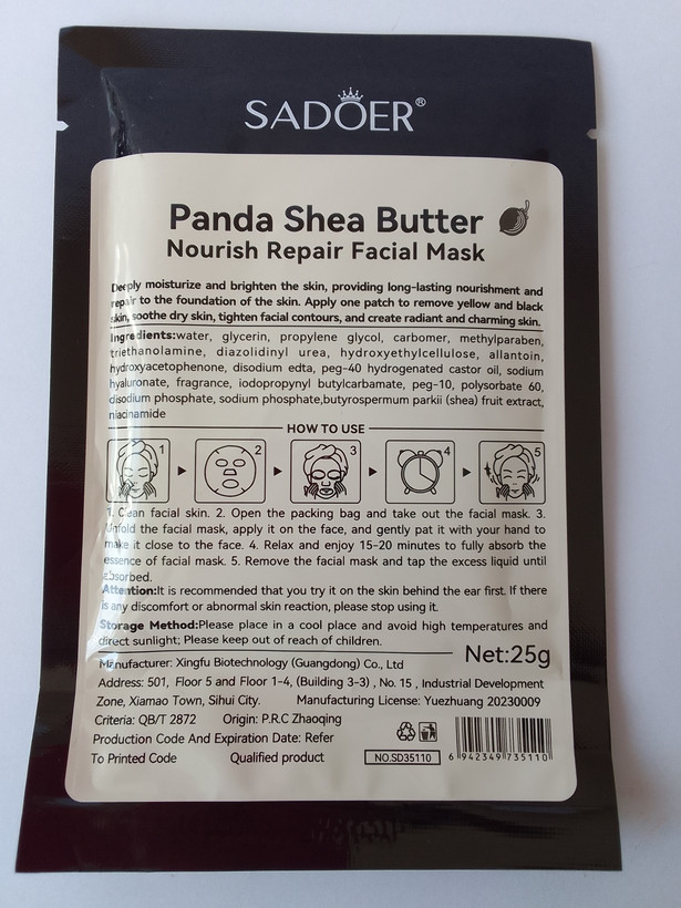 ماسک ورقه ای پانداSADORE Animal fruit با شی باتر، پوست را عمیقا آبرسانی و تغذیه می کند. این ماسک به روشن شدن پوست ،افزایش لطافت و خاصیت ارتجاعی کمک کرده و شادابی و طراوت را به صورت باز میگردد.